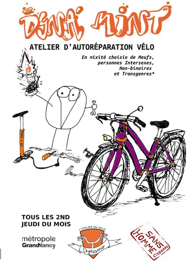 Késako ? C'est une permanence en non-mixité choisie, sans homme cisgenre. Un rendez-vous mensuel pour les personnes qui veulent expérimenter et pratiquer la mécanique vélo, apprendre et prendre de l'assurance !