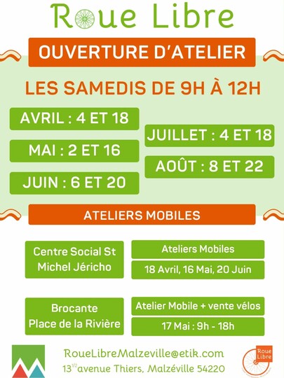 - Samedi 18 avril - 9h-12h Atelier Roue Libre à Malzéville