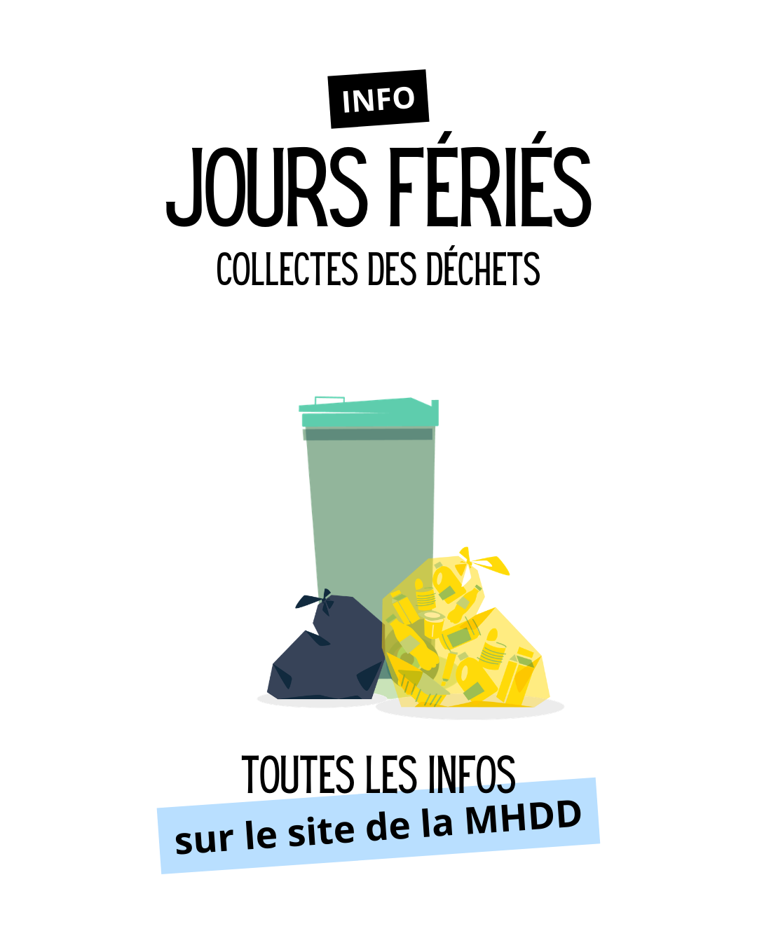 Lors des jours fériés, les éventuelles modifications de collecte sont indiquées dans le calendrier du service Mes Déchets.